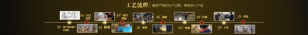 制作一件完美的鑄銅雕塑,最重要的步驟就是制作泥塑模型,然后再用工業(yè)硅膠拓印、翻模。所以泥塑的姿態(tài)、神情生動與否直接影響最終銅雕塑的品質(zhì)。所以我廠一直對泥塑模型的制作格外重視。我廠以雕塑為本,以藝術(shù)為根,挾中華文化之傳統(tǒng),偕歐陸藝術(shù)之風(fēng)韻,風(fēng)格獨(dú)特,盡顯淋漓盡致。我們本著大膽創(chuàng)新、勇于突破的精神,以追求卓越為導(dǎo)向,堅(jiān)持寧缺勿濫為原則,并可依照您提供的要求,為您量身設(shè)計(jì)制作。我廠人才濟(jì)濟(jì),有智慧嚴(yán)謹(jǐn)?shù)墓芾戆嘧?,眾多年輕充滿激情、充滿創(chuàng)意的專業(yè)設(shè)計(jì)團(tuán)隊(duì)、有專業(yè)技術(shù)精湛的雕塑制作人才和專業(yè)的施工隊(duì)伍。他們不僅具深厚的文化藝術(shù)底蘊(yùn),更汲取當(dāng)代雕塑精華,博采眾家之長,作品既有嚴(yán)肅莊重寫實(shí)題材,也有輕松前衛(wèi)的抽象題材,表現(xiàn)手法上浪漫主義中不乏樸實(shí),現(xiàn)實(shí)主義中蘊(yùn)涵著激情,設(shè)計(jì)理念貫穿古今、融匯中西,深刻詮釋著藝術(shù)的精髓,把古典主義和后現(xiàn)代主義完美的融合,將雕塑藝術(shù)演繹為力的凝聚、美的體現(xiàn),讓人們感受到的不僅是一種藝術(shù)的浪漫與優(yōu)雅、粗獷與悲壯、更是豐富的優(yōu)秀藝術(shù)寶藏和文化傳統(tǒng),讓您在藝術(shù)與文化中穿流,在時(shí)空中飄蕩,使靈魂在藝術(shù)的海洋洗禮。 MORE+